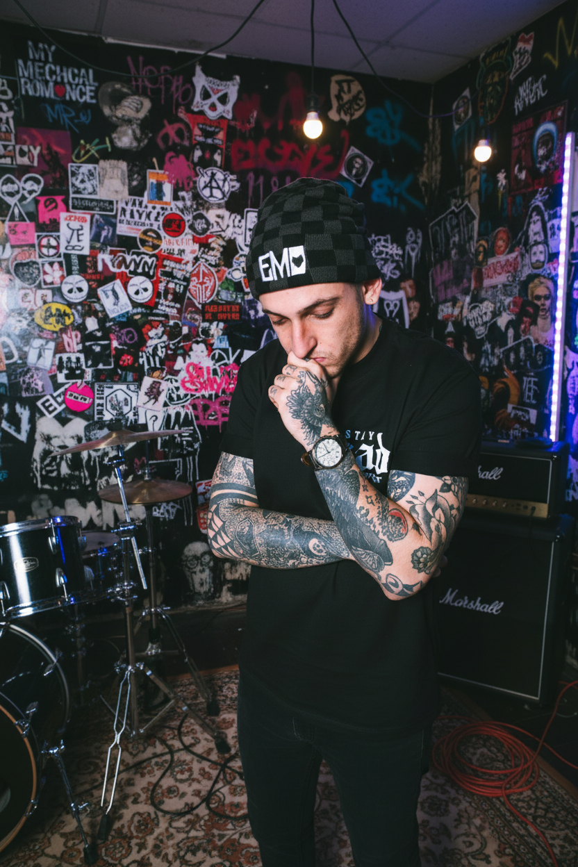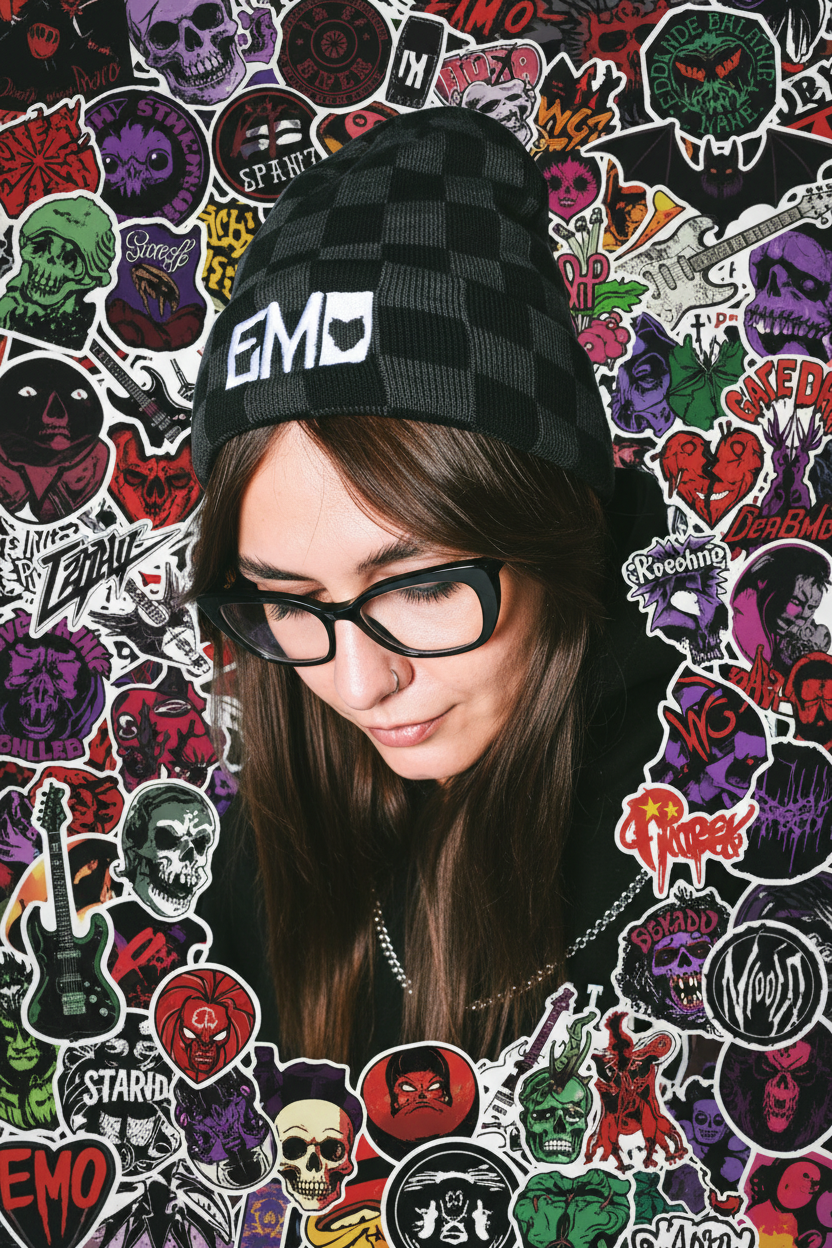 Checkered pattern adds a classic emo/alternative vibe