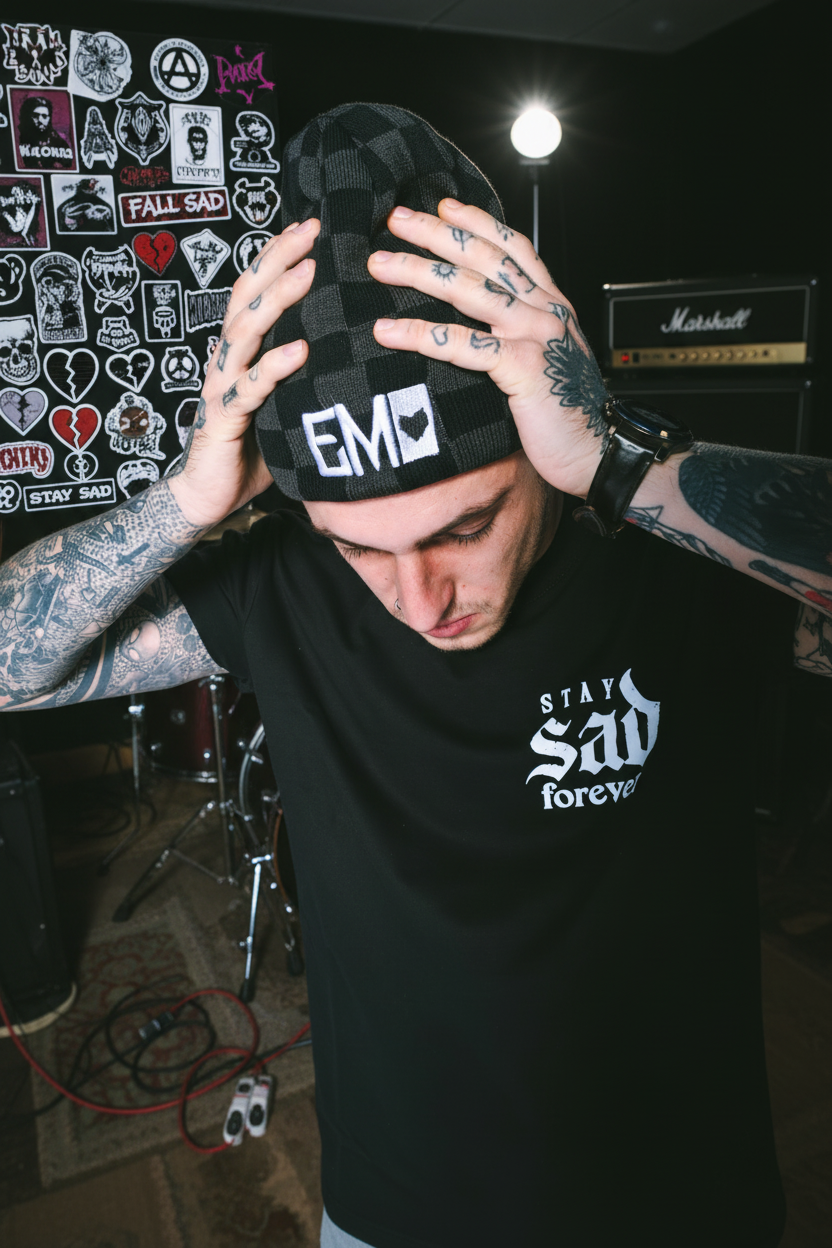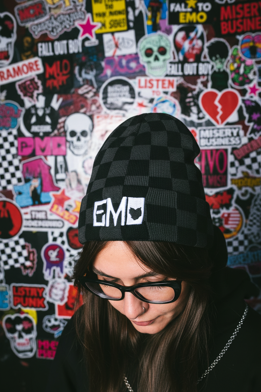 EMO Stitched Checkered Beanie
